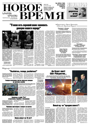 Общественно- политическая газета “Новое Время” была создана в 1992-м году и за 20 лет своего существования сумела заслужить среди армянских читателей право называться лучшей русскоязычной газетой в РА. Помимо сугубо политических тем издание обращается также к вопросам социальным, научным, культурным. Внимание уделяется и проблемам армянской диаспоры…
