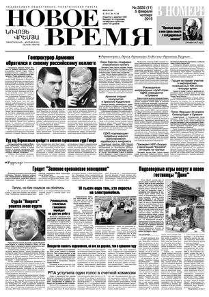 Общественно- политическая газета “Новое Время” была создана в 1992-м году и за 20 лет своего существования сумела заслужить среди армянских читателей право называться лучшей русскоязычной газетой в РА. Помимо сугубо политических тем издание обращается также к вопросам социальным, научным, культурным. Внимание уделяется и проблемам армянской диаспоры…