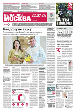Вечером на страницах «Вечерки» появляются эксклюзивные интервью ньюсмейкеров культуры и шоу-бизнеса, репортажи журналистов по вечерней Москве, афиша нашего города. Один раз в неделю выходит специальный студенческий вечерний номер.